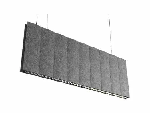 Praktisk akustikoptimering med ljudabsorberande LED-armaturer Ett vanligt problem i öppna kontorslandskap och andra större arbetslokaler är buller och annat störande bakgrundsoväsen. En hög ljudnivå på