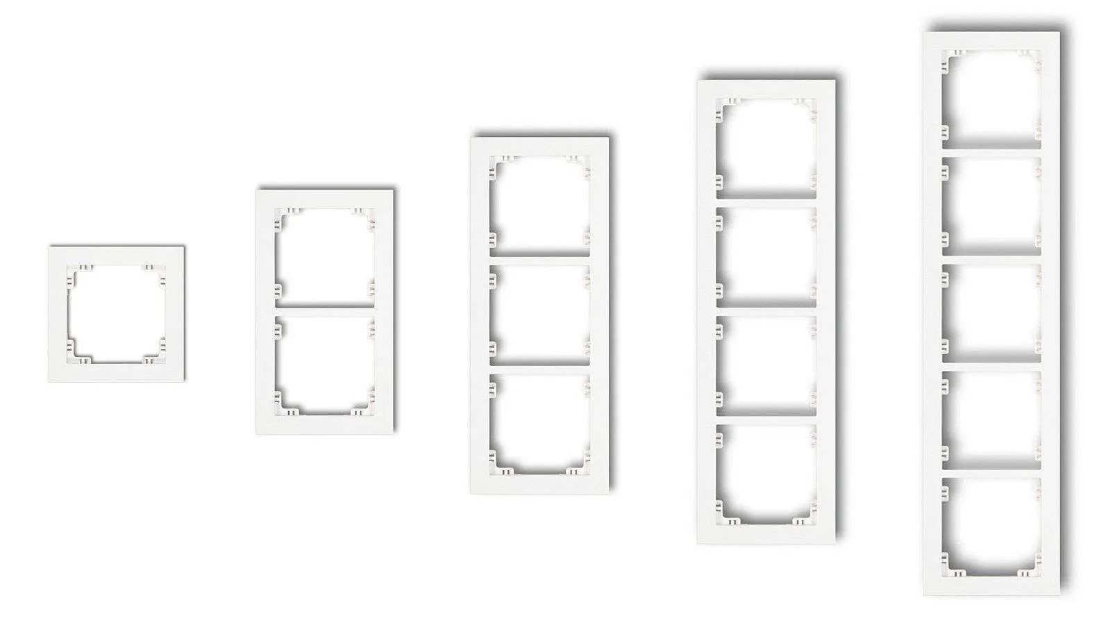 Strömbrytaren levereras utan ram så att man kan välja om man vill ha den som singel eller i en ram eller i kombination med flera olika moduler. Välj mellan olika material på ramarna såsom trä, plast eller glas.