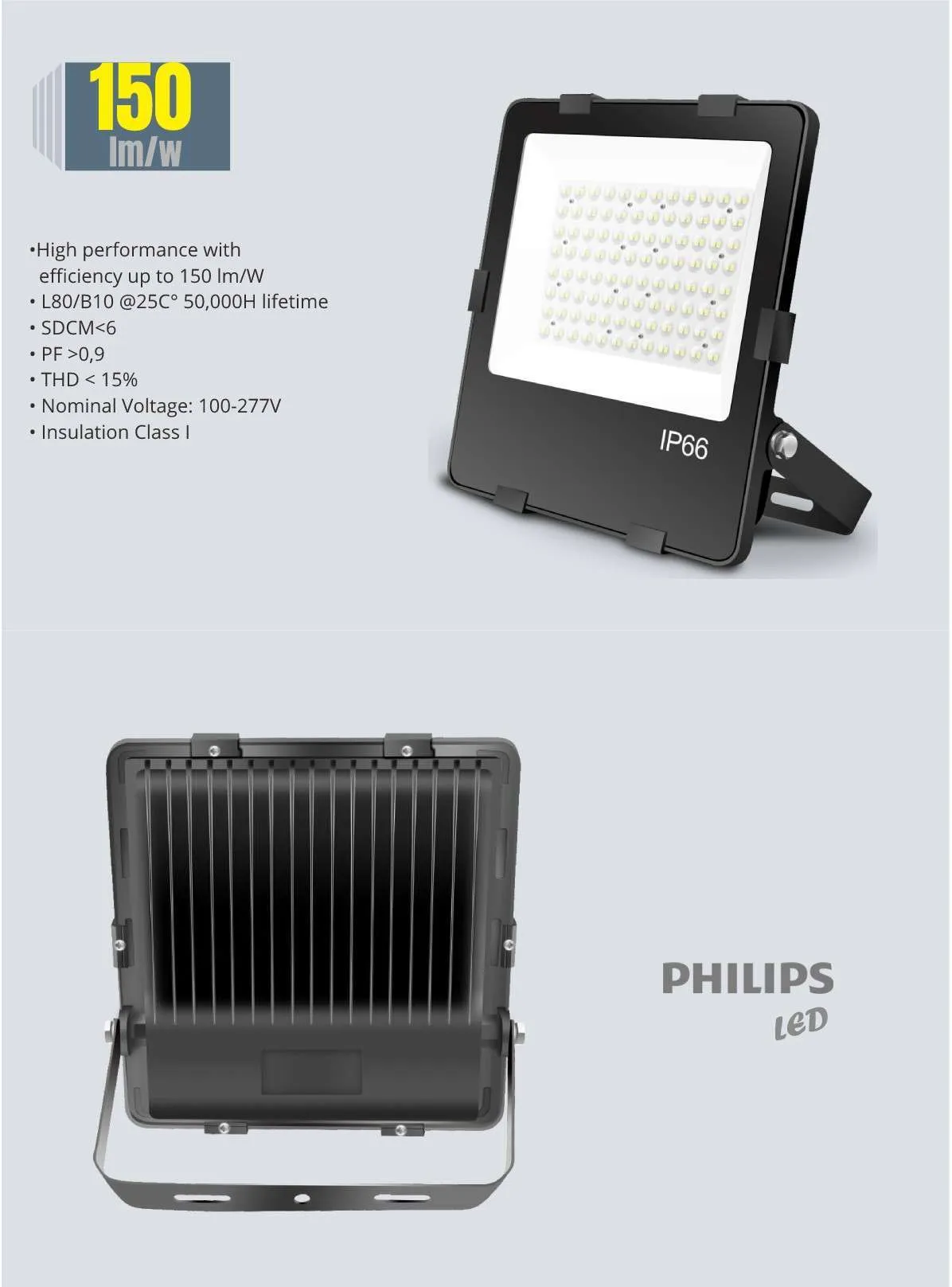 Denna högpresterande LED-strålkastare är utvecklad för att leverera kraftfullt ljus i alla typer av miljöer, från torra till fuktiga utrymmen. Med en IP65/IP66-klassning är den robust nog att motstå både damm och vatten, vilket gör den idealisk för garage, verkstäder, och industriella miljöer. Läs mer om IP65-klassningen här. Tack vare den höga ljusstyrkan är strålkastaren även lämpad för installationer i lokaler med högt i tak, där traditionellt starkare strålkastare behövs för att uppnå tillräcklig belysning. Denna strålkastare är konstruerad med ett slitstarkt aluminiumchassi och toppmoderna komponenter, inklusive högeffektiva LED från Philips.