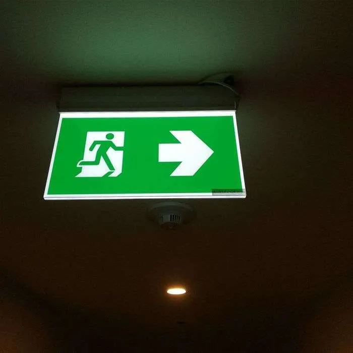 LED-ljusskylt som visar riktning mot nödutgång